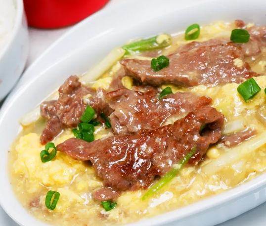 立刻把滑蛋牛肉倒回鍋裡(如果之前盛出來),或者把鍋裡的滑蛋牛肉推回芡汁中。快速而輕柔地翻炒幾下,讓每一塊牛肉和滑蛋都均勻裹上晶瑩剔透、閃閃發亮的芡汁。整個過程要快,避免蛋煮過頭變老。最後撒上剩餘的蔥花,再淋上幾滴香油(提香增亮),就可以帥氣地關火啦!