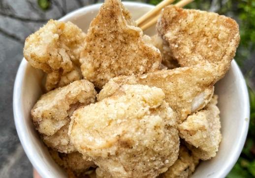 介紹:這攤絕對是魚池夜市的排隊天王!選用魚池、埔里在地新鮮採摘的香菇和杏鮑菇,裹上特調薄粉現點現炸。剛起鍋時金黃酥脆,咬下去菇肉多汁鮮甜,完全不會油膩。獨家的椒鹽粉或是梅粉是靈魂,我個人超愛加梅粉,酸甜解膩。每次去都看到攤位前滿滿人潮,但老闆手腳超快,不用等太久。上次週五去晚了,杏鮑菇竟然賣完了,害我超扼腕!